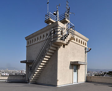 | 内部を見たら、ぜひ屋上にも上がってみてください。 屋上には気象観測のための塔があるのですが、ここでもデザインの手を抜くことなく、丁寧に仕上げられています。 |