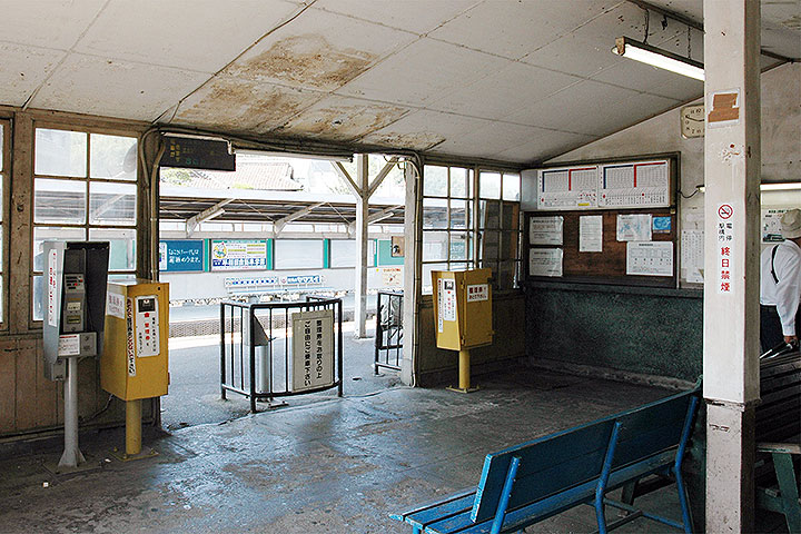 | 1912年に開業した広島電鉄※は1920年代に入ると宮島線の建設にとりかかり、徐々に路線を伸ばしていった。廿日市には駅と変電所が建設され、駅舎は1924年に廿日市町停車場として竣工した。 まず、駅なのに和風というのがおもしろい。壁は伝統的な真壁で、竹で小舞を組んで土を塗った上に漆喰で仕上げている。あちこちで土壁が剥がれて小舞が顔をのぞかせているので間違いない。基礎を見ると石、レンガ、コンクリートが混在しており、増築や改修の跡をうかがわせるが、全体としてはおおむね当初の姿が保たれているようだ。そして券売窓口や改札の痕跡は、宮島線が純然たる鉄道であった記憶をさりげなく伝えている。 確かに文化財クラスの建築ではないし、バリアフリーにもなってないし、もはや駅舎が不要なのも分かるけども、最後まで残ったオリジナルだけに解体は残念でならない。補修して違う用途に転換できればよかったのだが。 もう一つ残念なのが、すぐ近くにあった変電所だ。赤レンガの優美な建物で、被爆3日後に電車を動かした功労者でもあったのだが、今ではその痕跡さえ残っていない。 ※本作竣工時の社名は広島瓦斯電軌 |