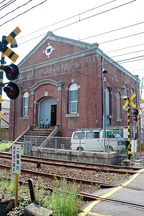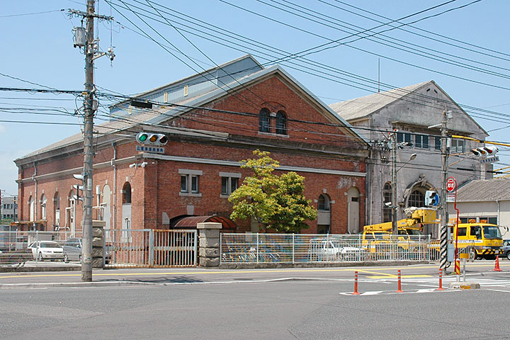 レンガ造の建物はいかにも歴史がありそうに見える。日本では1923年の関東大震災以降はレンガが使われなくなったから、現存するレンガ造建築は震災前のものといえる。そして広島の中心部で唯一となったレンガ造建築がこの変電所だ。普段は非公開だが路面電車祭りの際には内観できる。 この建物は路面電車用の発電所として建てられたもので、南が事務所棟(旧ボイラー室)で北が変電所棟(旧発電機室)。目前にはかつて平田屋川という運河があり、燃料を船で運んでいた。被爆時には室内を焼失したが倒壊は免れ、応急措置を受けて再稼働した。1958年には損傷したレンガ壁をコンクリート壁に変えるなどの補修工事を受けている。 事務所棟はレンガらしい外観が残るが室内に昔のものは少ない。レンガはイギリス積みで、窓まわりは石造、コーニスは人造石のようだ。変電所棟は改修工事で外観が変化したが、入口は大アーチに擬宝珠が付くなど装飾性が高く、今なお電気設備があるために半地下の構造が残り、見上げれば小屋組の鉄トラスも見える。床に使われている石材も当時のものなのか、味わいがあって印象的だった。 前述のとおり、この建物はとても貴重なレンガ造建築なのだが、文化財指定などの保護や支援を受けていない。広島の発展や復興を支えた路面電車の歴史を語るシンボルでもあり、行政や市民が支えてでも次世代に受け継ぐべき価値のある建物ではないだろうか。 |