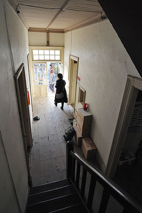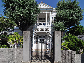 | 広島湾に浮かぶ江田島には、かつて海軍兵学校という士官学校があり、世界にその名を知られていた。現在は自衛隊の学校へと変わったが、赤レンガの校舎はそのまま残され、多くの見学者を集めている。 今回紹介する建物は学校のすぐ脇の小道沿いにある。兵学校に勤める教職員などの福利厚生施設として建てられたもので、遊戯場や浴場を備えていた。外観を見ると、木造2階建てでレンガ基礎、外壁は下見板張りペンキ仕上げ、窓は縦長で上げ下げ式。エントランスには小さなベランダが付いている。典型的な明治後半の洋風建築であり、華美ではないが風格のあるたたずまいだ。戦後は民間企業の事務所として大切に使われていたので保存状態はよく、内部には年季の入ったベッドやビリヤード台まで残っている。江田島の民間施設では指折りの歴史的価値を持つ建築といえるだろう。 さて、現在この建物は空き家になっていて、このままでは解体される可能性もある。そこで地元の有志がこの宝物を受け継ぐための活動を始めていて、まずは小規模なイベントや見学会を行うようなので、もし興味を持たれたらぜひ参加してみてほしい。 ぐるぐる海友舎プロジェクト実行委員会 |