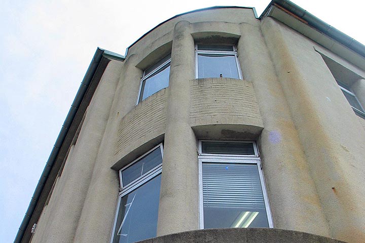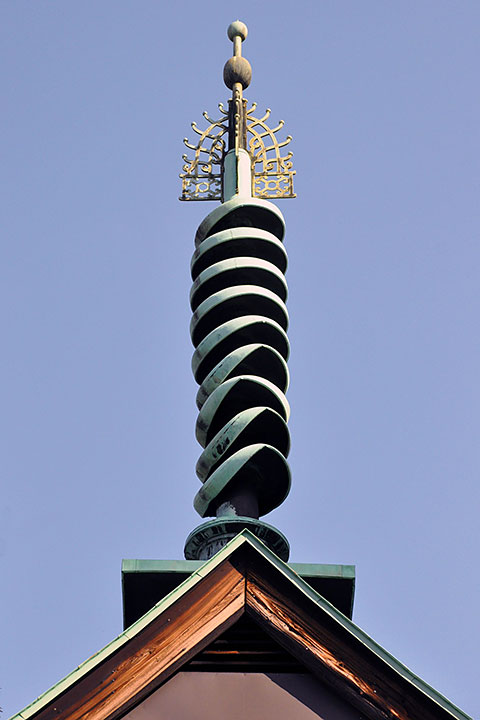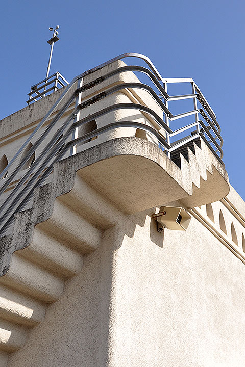 | 20世紀に入ると科学技術の進歩や社会構造の変化により、世界の建築は大きく変わっていく。特に重要なのはRC(鉄筋コンクリート)の発達で、それまでの石やレンガにはできない表現が可能となり、機能を重視したシンプルな形の「モダニズム建築」や、彫塑的な「表現主義建築」などが誕生した。 江波山気象館は、広島に残るおそらく唯一の表現主義建築で、気象台庁舎として建てられた。外観は丸みを帯び柔らかい印象を与える一方、窓は西欧の伝統どおり縦長で安定感がある。ディテールでまず注目すべきは玄関ひさしで、柱が一本だけで意図的にアンバランスに見せている。また、塔に上がる丸っこい階段は壁から突き出た「片持ち」。おそらくRCならではの新しいデザインを試したかったのだろう。 室内もじっくり鑑賞したい。天井まわりは白い漆喰で化粧され日本を思わせる造形。階段の床や手すりは「研ぎ出し」と呼ばれる仕上げで、職人の丁寧な仕事に目が釘付けになる。広島の被爆建築で、外観に加えて内装まで残るのは本作くらいしかなく(旧日銀などで一部現存するが)、戦前の広島で花開いた豊かな建築文化に、わずかでも触れられるのはとても貴重な体験だ。 それと、個人的にイチ押しなのが柳田邦男「空白の天気図」。被爆直後の広島を襲った枕崎台風に、傷ついた気象台と職員たちが立ち向かうノンフィクションで、これを読んでから現地に行くと建物を見る目もまた変わってくる。 |