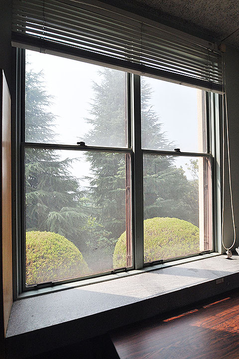 | 今年、モダニズム建築の旗手である建築家ル・コルビュジェの作品群が世界遺産となった。だが、モダニズムは寺社仏閣やレンガ建築のような、いかにも文化財らしい形ではないためか、良さが認識されないことも多い。広島県庁舎はその典型で、著名な建築家など「見る目」のある人は絶賛するが、ただの古いビルにしか見えない人も多いだろう。 焼野原から出発した戦後民主主義を担う庁舎建築は、それまでの重厚な城館のような建物ではなく、明るく開放的で市民が気軽に立ち寄れる設えが求められ、ル・コルビュジェや丹下健三に影響されたモダニズムが好まれた。この県庁も同様で、ピロティこそ中途半端だが、機能に忠実な平面計画、庭園の緑と一体化するエントランス、横長の窓、そして屋上庭園を備えており、細部も破綻なくまとめられている。砂地なのに杭を打たず、建物が沈下する前提で設計されているのも興味深い。さらに細部を見ると、その保存状態に目が釘付けになる。窓枠は今も鉄製で、内部のドアは木製のものが現存し、現場の資材で作ったというレリーフも当時のまま。建築家が意図した当時のモダニズムの美がタイムカプセルのように保存されており、文化財なみの価値ある建築といえる。 県はこの建物を当面使い続けると決めている。窓や水回りなど現代のニーズに合わないところは改修し、外装をきれいに塗り直してやれば、きっとすばらしい輝きを放つことだろう。 |
