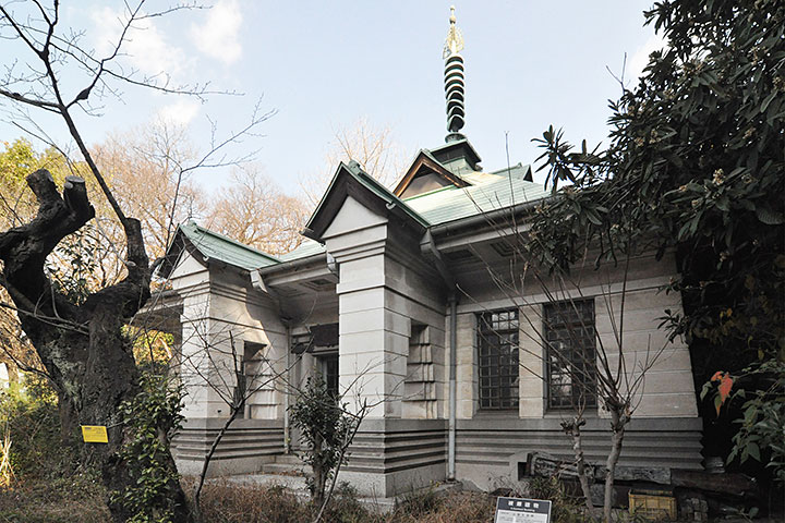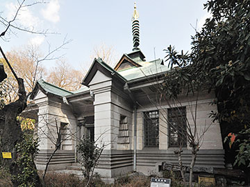 | 広島でRC(鉄筋コンクリート)の近代和風建築といえば、比治山の山陽文徳殿を外すわけにはいかない。前回紹介した厳島神社宝物館は木造のかたちを忠実にRCに置き換えていたが、本作は違う。RCという新技術を使いつつ、モダニズムではない「和風」をどう表現するか試行錯誤する中で、思いきり抽象化しながらも何となく和だとわかるデザインが試されている。 外観をよく見てみよう。入口の付柱は日本古来の丸柱。屋根は当初瓦ぶきで、頂点には本来お寺の塔に載っているはずの九輪(被爆時の爆風で変形したままだ)。一方、日本建築の特徴であるはずの柱・梁はあまり意識されておらず、窓は西欧的な縦長。壁や軒裏の幾何学的な造形は分離派の影響と思われ、一部は校倉造のようにも見える。閉鎖されていて室内には入れないが、格天井や花頭窓などの和のインテリアが残っているようだ。 少し深い話をすると、この時代のRC和風建築は当時吹き荒れていたナショナリズムと無縁ではない。本作は頼山陽の没後百年を記念するお堂だから和風なのは当然だし、帝冠様式ほど強烈なかたちにはなってないけども、それでもデザイン上の不自然さは残る。建物は時代を映す鏡であり、じっくりと見つめればどんな本よりも雄弁に歴史を語ってくれる。 比治山下電停から現代美術館に上がる道中にちゃんと看板も立っているので、アート鑑賞ついでにぜひ立ち寄ってみてほしい。 |