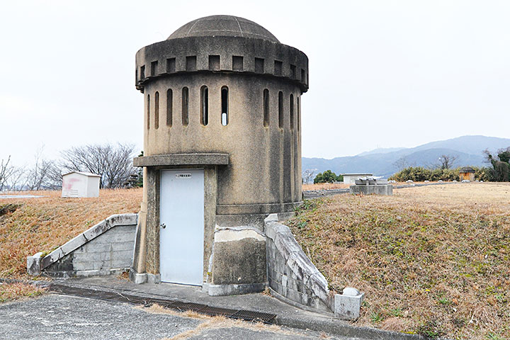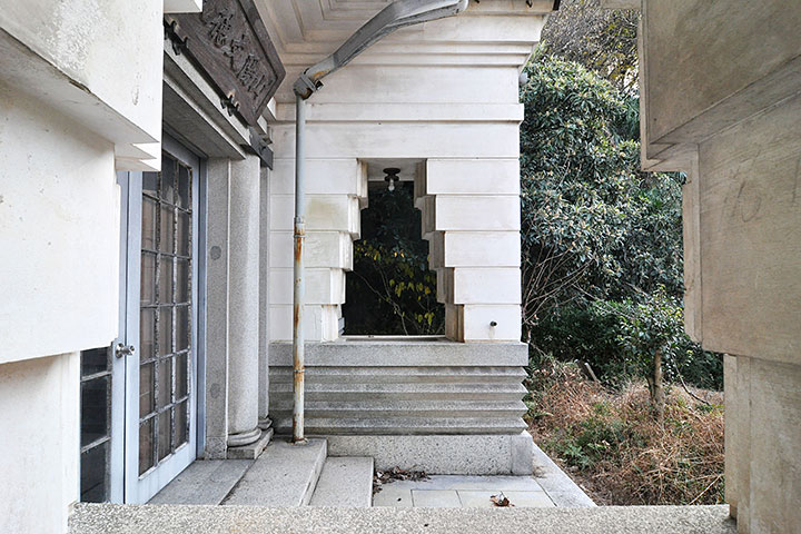 | 近代化を急ぐ広島に待望の水道が開通したのは1898年。陸軍が建設した牛田浄水場に市の水道管を接続することで実現した。牛田に残る古い水道施設のうち旧送水ポンプ室は資料館に改装され、誰でも見学できるが、その背後には現役で稼動しているために非公開となっている歴史的な建物もある。そのひとつが今回紹介する配水井上屋(はいすいせいうわや)だ。 ろ過などの処理が終わった上水を一時貯留するため高台に置かれるタンクを配水池といい、本作は配水池から水が送り出される場所にある。鉄筋コンクリート造で石貼りのようだが、窓は縦長で平行アーチが表現され、コーニスにパラペットも付く。コンクリートを使いつつも様式に基づくデザインを指向するのがいかにも大正時代らしい。ごく小規模なものとはいえ、旧日銀やアンデルセン以外に様式建築らしい建物が広島にまだ残っていたとは驚きで、出会えた時は無性に嬉しくなった。 配水池にある施設はこれだけではなく、すぐ近くには1930年代に建てられた表現主義的な柔らかいデザインの上屋もある。これらは広島市が公開している被爆建物リストにも記載がなく、まさに知られざる被爆建築というべき存在だ。非公開なのは現役だからしょうがないとして、思いのほか意匠性も高いので、文化財・被爆建物としての保存や手入れをしてもらえるとよいのだが。 |