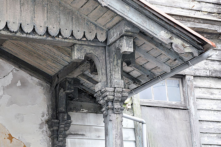 | 高架道路の建設で数々の近代化遺産が消えてしまった宇品に、忘れられたように建っている木造洋館がある。旧広島県港湾事務所といい、宇品港を管轄する水上警察署として建てられ、後に県が事務所として使い、現在は空き家となっている。 本作をひとことで表現すると、以前紹介した江田島の海友舎と同様、明治後半の典型的な洋館といえる。基礎は花崗岩で外壁は下見板張り、窓枠は木製の上げ下げ式。道路側エントランスにはポーチが付き、寄棟屋根中央のペディメントは道路側・海側の両方にある。 洋館と呼ばれる建物は、本作のような明治後期のものが成熟度・純度のバランスが最も良いと思う。明治初期のものは擬洋風といって大工たちが見よう見まねで作ったものが多い(それはそれで面白いのだが)。一方、昭和になると日本建築との融合が進み、西欧そのままの洋館ではなくなっていく。 そういう目で見ると、明治後期の「洋館らしい洋館」は広島デルタではこの建物ただ一つしか残っていないはずだ。その貴重な建物の窓がベニアでふさがれ、朽ち果てていくのは見ていてつらい。県は再利用を考えているようだが、既に痛みが進んでおり(木造建物は住み続けないと急速に老朽化する)、救うには大々的な修理が必要なはずだ。であれば、最近にぎわいが出てきた水辺の倉庫街へ移築してはどうだろう。宇品の歴史を見守ってきた“建築遺産”として輝きを取り戻せると思うのだが。 |