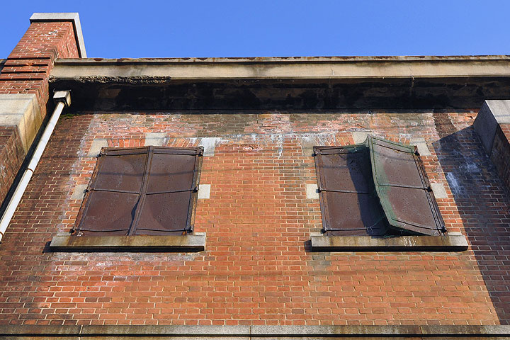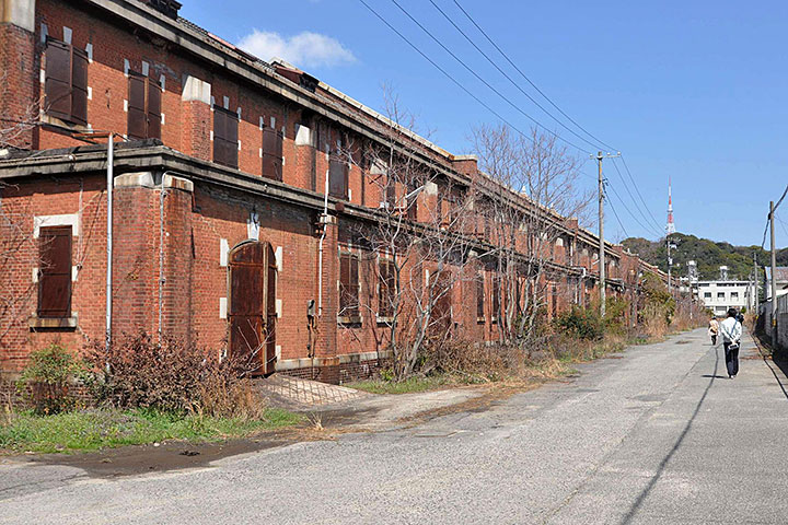 | この連載のタイトルは"建築遺産"だが、これほど遺産らしい建物はめったにあるまい。本作は軍服などを生産する軍需工場の倉庫として建設された。外観からはレンガ造に見えるが、実はRC(鉄筋コンクリート)造で、3層構造の内部にはちゃんとコンクリートのスラブが入っている。20世紀初頭のRCは世界的に見ても古く建築史上の価値は高い。延々と続くレンガ壁に圧倒され、被爆時に曲がったままの鉄扉が残っていることに驚かされる。広島に残るスペシャル級の遺産といっていい。 さて、市内の旧軍施設のうち糧秣支廠は郷土資料館部分を残して大半が取り壊され、兵器支廠はレプリカ1棟を残して完全に消滅、旧宇品駅の日本一長かったプラットホームも姿を消した。もし被服支廠が失われてしまうと、往事の軍事施設のスケールを体感できる場所がなくなり、軍都から平和記念都市に転換した歴史が本の中だけの出来事になってしまうわけで、それは広島として看過できまい。個人的には、本作は原爆ドームなみの熱意と予算をかけて保存すべきで、しかもただ保存するのではなくテートモダンのような美術館に再生させるのがベストとみる。確かに耐震性には難がありそうだし、階段も足りない、防火設備もない。現行法規に適合させるには相当なお金がかかりそうだが、世界中でも広島のこの場所でしかできないアートは必ずあるはずだ。 [注意!] 通常非公開であり敷地内には入れません。 |