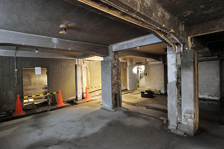| かつての軍都広島のスケールを唯一留める倉庫群。この連載で以前とりあげた建物だが、特別に内部調査を行う機会を得たので改めて紹介したい。 本作でまず重要なのは、国内最古級のRC(鉄筋コンクリート)造という点だ。ただ、外観から分かるように壁はあくまでレンガ造であり、RCは内部の柱と床(3層構造になっている)に使われている。窓やドアなどの開口部は従来通りレンガのアーチで、RCではないようだ。20世紀初頭はRCの技術も発展途上で、耐震性も十分とはいえないが、逆に模索を続けていた時代の様相をよく留めているともいえる。 空間として特に印象深いのは3階の屋根裏。屋根は鉄骨でもいいのにあえてRCで作ってあり、大空間に天窓から差し込む光は神秘的ですらある。この「大空間」というのもポイントで、レンガだけで建てると壁だらけになるところを、RCにより壁のない大きな室内、モダンな空間を実現している。装飾は梁に繰形(くりがた)が若干ある程度で、様式建築からモダニズムに向かう過渡期らしさを感じる。このように、レトロな外壁とモダンな内部をあわせ持つところに本作最大の特徴がある。 本作は現存する貴重な被爆建物であり歴史的価値は高いが、改修や活用の難易度もかなり高い。まずは自分にできること、建築としての真価を解き明かすところから始めてみようと思う。 |