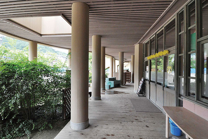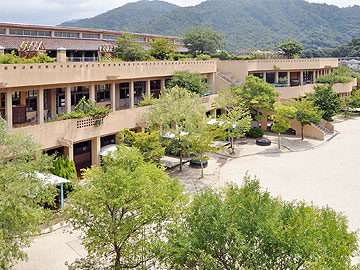 | アーキウォーク広島は10月に建築一斉公開イベントを開催し、多くの参加者に広島の建築を見学して頂いた。今回はその中から矢野南小学校を紹介したい。設計を担った象設計集団は80年代に埼玉の笠原小学校(児童は常に裸足で過ごすというスゴイ設計)を手がけており、自然との共生、外部と内部の一体化、経年変化を前提とするディテールなど、笠原小学校で成功した手法が本作にも取り入れられている。 外観を見てみよう。独特のうねった造形は段々畑や住宅団地等の地形の表現だが、それを支えるRCの列柱との組み合わせはガウディのグエル公園を連想させる。共用廊下は外部空間として教室の南側に配され(通常は教室の採光を優先して北側に配する)、子供たちが休み時間に教室から出ると、そこは草の生い茂る専用庭。これが2〜3階にもあるのだからすごい。しかも屋上には水田まである。 ディテールも丁寧。ドアや窓枠は木製で古き良き木造校舎のような風合い。中庭の排水路はレンガやタイルで彩られ、子供が喜びそうな遊び心あふれるしかけが随所に見られる。 建物は徐々に色あせ、使い込まれた建具は質感を増し、樹木は太く大きく成長していく。時間の経過と共に良さが増えていく建築はそうそうあるものではない。数十年後にどこまで美しくなるか、今から楽しみだ。 [注意!] 普段は内部見学することはできません。アーキウォーク広島が実施する見学会などの機会をご利用ください。 |