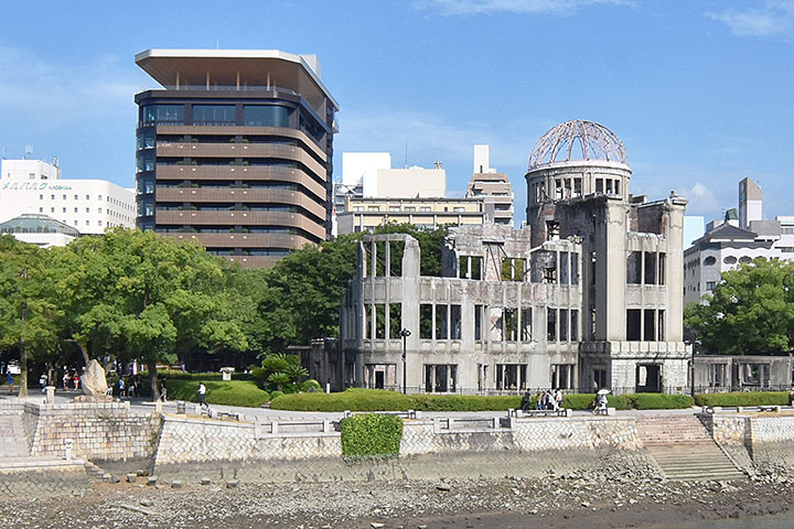 | 言うまでもなく被爆地広島を象徴する建造物であり、ユネスコ世界遺産。だが、多くの人にとって、見ているようで見ていない建物ともいえる。 本作は日清戦争後の県内産業振興のため県が建設した。うねる外壁や楕円ドームはネオ・バロック風で、幾何学的な装飾はセセッション風。設計した建築家ヤン・レツルは、セセッション発祥の地であるウイーンに近いプラハで建築を学んでおり、その本場仕込みのデザインを広島に持ち込んでみせた。ぜひ本作のエントランスをじっくり観察してほしい。旧日銀のような様式建築とは違う前衛的な装飾が欧州直輸入の貴重なものと知ると、見えかたも変わってくるだろう。さらに、よく見るとこの建物は川のラインに沿って全体がカーブしている。川側にファサードを展開して河川景観を整えようという設計思想は、川の町らしさの表現として現代の我々もぜひ見習うべきだ。 さて、実は被爆建物という分類は個人的にあまり好きではない。レツルも最初から廃墟を設計したのではないから、建築としても評価してよとあの世で願っているような気がする。それに、もし被爆していなければ今ごろ解体か保存かでもめているかもしれない。そんなことを考えると、良い建築は被爆建物だろうと戦後モノだろうと残していくことの意義を、建築や街を見る目を持つことの大切さを、もっとアピールせんとなぁと、あらためて思う。 |