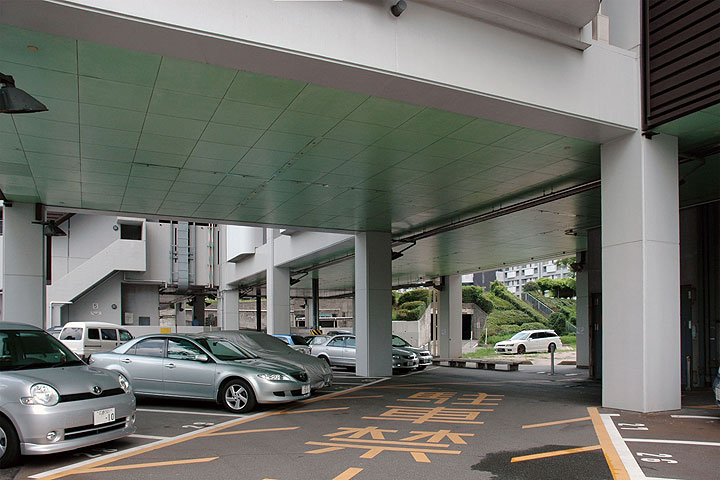 | アーキウォーク広島が10月に実施した建築一斉公開イベントの中で最も人気を博したのがこの基町アパート。地元民なら誰でもその存在は知ってるけど、屋上庭園(通常非公開)がこんなになってたなんて!という意外性がうけたのだろう。屋上庭園は機械設備などのないシンプルな空間で、しかも北端部が最も高くて南に行くほど低くなっており、眺望は申し分ない。ビルの屋上というよりは山の尾根線のようであり、集会所や庭園が天空に浮かぶ景は山岳集落を連想させる。 ピロティ、屋上庭園、ユニット化された住戸などは、ル・コルビュジェが提示したスタイルを踏襲しているが、屏風のように折れ曲がった棟配置や人工地盤による歩車分離など、より都市への意識が強い作品といえる。また、屋上庭園にせよ共用廊下にせよ、従前の低層密集住宅群の雰囲気やスケール感をどう受け継ぐかに注意が払われており、この点は藤本昌也(大高正人の下で本作の設計を担った)が後に手がける「鈴が峰住宅」「庚午南住宅」にも受け継がれている。 話が広島から離れてしまうが、もし建築家大高正人に興味を持ったら、ぜひ坂出人工土地(香川県坂出市)を訪問してほしい。基町ではあまり見られない、人工地盤によるメタボリズム表現を存分に鑑賞できる。 [注意!] 基町高層アパートは現役の住宅です。外観であっても不用意にカメラを向けることは控えてください。屋上は通常非公開であり、立ち入ることはできません。(アーキウォークでは不定期で見学会を実施しています) |