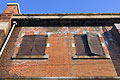 | 旧住友銀行東松原支店。かつての街道筋の面影を伝えるほぼ唯一の存在であり、駅前再開発で失われる建物の中では純喫茶パールと共に特に記憶にとどめたい逸品だ。 敷地は旧西国街道に沿ったヒューマンスケールの商店街にある。そのためかファサード(正面)はレンガで表情づけられており、いわゆる看板建築の一種としていいだろう。設計は紙屋町の旧広島支店ともども住友の工作部(日建設計の前身)が担当した。被爆時には躯体を残して全焼し、戦後に銀行から物販店に変わる過程で大幅に改造されたが、外観は当初の姿をよく残している。 構造は鉄筋コンクリートかと思ったが、レンガとコンクリートの併用らしい。看板建築にしては装飾は控えめで、モダニズムに向かう過渡期らしいデザインともいえる。だが、ファサード右側の膨らんだ部分だけは庇やコーニスでしっかり飾られている。つまりそこが当初の玄関ということだ。 裏側に回ってみると、赤レンガ、コンクリートレンガ、現場打ちコンクリートなどがまぜこぜになった、これぞ地霊というべき不思議な壁が顔をのぞかせている。いったいどういう過程でこうなったのか、謎を解き明かしたかったのだが、残念、時間切れになってしまった。 |