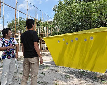 | ――続いては広島市内の公園に次々と誕生している公衆トイレ「ひろしま・パーク・レストルーム」の一つ、吉島公園の事例についてお聞きしたいと思います。この一連の作品は、小川さんが広島市のコンペで最優秀賞を取って実現しました。 土井 屋根の色に目を引く原色を選んでいるのがいいよね。公園施設はアースカラーで木とか土の色になりがちだけど、あえて周りから浮き立つ色を選んでる。 小川 屋根の色は公園の遊具で使われる鮮やかな色をイメージしていて、しかも公園ごとに変えてます。色の選定は割と単純で、吉島公園の場合はトイレ予定地の脇にイチョウがあったから黄色。 土井 公衆トイレのデザインを(設計入札ではなく)コンペで選ぶということ、そして同じデザインのトイレが次々と広島市内に生まれているということは、小さいけども都市的なインパクトがある。もちろん僕たち建築家にとってもエキサイティングな出来事だと思う。 ――トイレは二等辺三角形のプランで、その先端は北を向いています。 土井 広島という場所を考えると、三角形の頂点を爆心地に向けるのもあると思うけど、それは考えなかった? 小川 全て北向きとしたのは、全てのレストルームで同じ光の空間を作りたかったのと、広島の子供たちがグローバルな視点を持って世界の中での広島を意識できる仕掛けとして考えたため。平和都市だからと言って爆心地を意識させることが公園で遊ぶ未来ある広島の子供たちへのメッセージとして本当に良いのか分からないし、都市のインフラ建築としてより普遍的な軸を埋め込みたくて、こういう提案にまとめました。 ――街路グリッドがはっきり見られる都心の公園に建てれば、実は広島の道路が東西南北から少し傾いていることが分かって面白そうです。 小川 それは面白いですね。 土井 トイレ単体ではなく、トイレの軸線を合わせるなど都市レベルで全体をひとつのアイデアとして提案した事はすごく面白い。ラ・ヴィレット公園のような様々な要素が重なって最終的に全体が完成するような。 ――デザイン上の細かい工夫などはありますか。 小川 屋根をできるだけ軽く見せたいという思いから、南東又は南西から見たときには軒下が隠れて屋根が一枚乗っているだけのように見えるようにしてます。窓はガラスだと割られる恐れがあるのでアクリルで。通常公園のトイレはガラスブロックが多いけど、割れたときのメンテナンスが結構大変なので。 吉田 こういった不特定多数が自由に利用する場所がデザインされているということは確実に生活の質を上げる。実際に見てみると再確認できるね。 土井 今後はトイレだけじゃなくて、公園自体のデザインもしていく必要があるんじゃないかな。都市部の建物がどんどん更新される中で、公園だけはスケール感が変わらないというのは貴重なことだと思う。そういうところこそ、この人がデザインしたというものがあっていい。 |