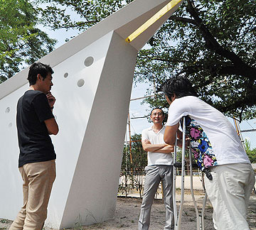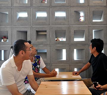 | 地元広島の建築家は、広島の建築を、この街をどう見ているのだろう? 三人の若手建築家と建物を見て回りながら様々なお話をうかがいました。 (建築ガイドブック「HIROSHIMA ARCHITECTURE」より) |