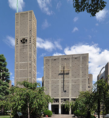 | 小川 世界平和記念聖堂は、経緯や理屈とは関係なく純粋に良い建築だと思う。教会建築って、目的がシンプルな中でどう造形的に表現するかが問われるから、個人的に好み。他の街に行ってもよく見に行く。 土井 丹下さんの平和記念資料館はコルビュジェの造形やその時代のデザインの流れなどがよく現れていて分かりやすい。村野さんの世界平和記念聖堂は、ほぼ同時期に建築されているんだけど、当時のデザインの主流ではなく、村野さんの設計を突き通しているという感じ。そういう人の建築が面白いということが多々ある。 ――つまりコルビュジェと反コルビュジェのせめぎ合いとでも言うべき状況が広島で生まれたと言えそうですね。二つ同時に重要文化財になったのも運命的なものを感じます。 |