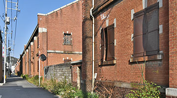 ![]() 旧陸軍被服支廠倉庫の道路側外観 ![]() 内部の小屋組み ![]() 日本建築学会による建物調査(2014年) |