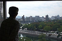 会場として商工会議所の部屋を特別にお借りしました。ここから眺める原爆ドームや平和公園は普段とは違う表情を見せてくれます。 |