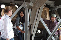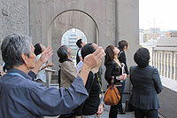 建物に精通しておられる現地ガイドの皆さんから、建設時のエピソードや村野藤吾のデザインについて詳しい話をうかがいました。通常施錠されている塔や地下聖堂にも入りました。 |