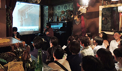 アーキウォーク広島のメンバーが、県内をめぐる中で見つけた各地の建築について、ひたすらマニアックに語るトークイベント。会場であるヲルガン座の独特な雰囲気の中でフリートークが展開されました。