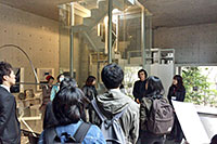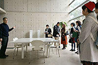 ●比治山本町のアトリエ 11月13日(日) 14:30〜15:20、15:40〜16:30 建築家 村上徹氏のアトリエは比治山の麓に、わずかな高低差を活かす形で建てられています。コンクリート打ち放しのシンプルな空間やシャープな造形の階段などを、ご本人による解説を聞きながら、じっくりと見学しました。 |