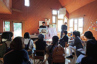 ●古田幼稚園 11月12日(土) 13:30〜14:30 ルドルフ・シュタイナーの思想に基づく幼稚園の園舎。とても動的な印象を与える個性的な建物です。スイスに残るシュタイナー建築と比べながら、彫塑的な造形を木造で建てたという職人技の数々を鑑賞しました。 |